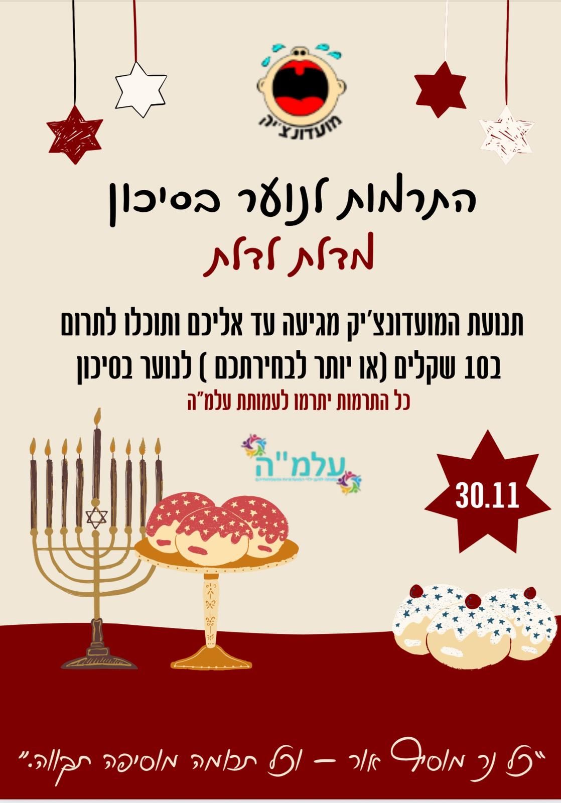 במסגרתו תוכלו לתרום לעמותת ע.ל.מ.ה המטפלת דואגת ומחבקת את הנוער בסיכוי(ן)