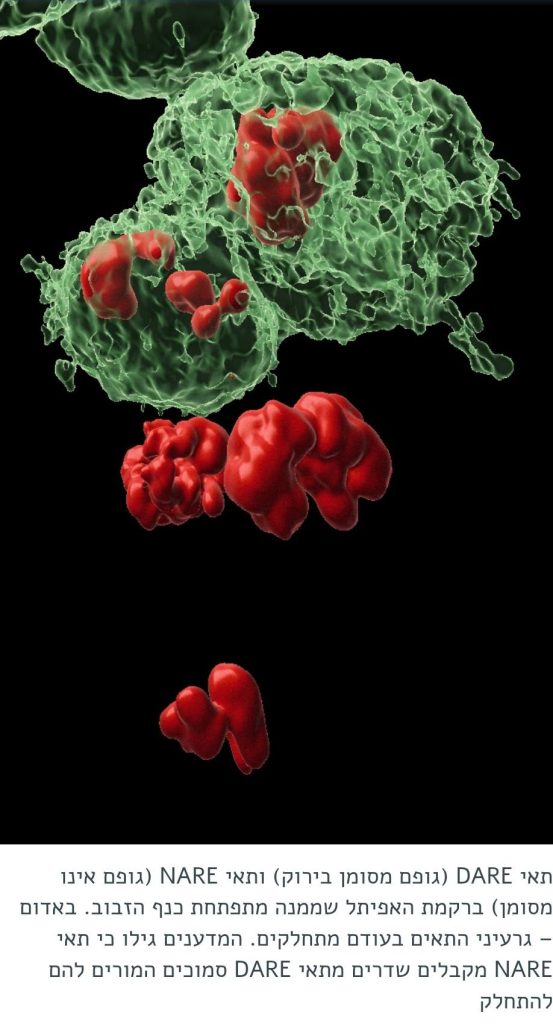 במחקר החדש, שהובילה ד"ר צליל בראון ממעבדתו של פרופ' ארמה, חזרו המדענים לניסוי המקורי שבו התגלתה התופעה המסתורית, והקרינו זחלים של זבובי דרוזופילה בקרינה מייננת – כשהפעם בעזרת טכנולוגיות חדשניות יכלו לעקוב בדקדקנות אחר התחדשות רקמת האפיתל. "ניסינו לזהות ברקמה תאים שלוחצים על כפתור ההשמדה העצמית אבל נשארים בחיים", מתארת ד"ר בראון. "לשם כך, השתמשנו ב'חיישן מושהה', שידע לדווח לנו על תאים ששרדו את ההקרנה, אף שהופעלה בהם הקספאזה הראשונית. כך חשפנו אוכלוסיית תאים שקראנו להם תאי DARE – תאים אלה לא רק ששרדו את ההקרנה, הם התרבו, שיקמו את הרקמה הפגועה ומילאו כמעט מחצית ממנה בחלוף שתי יממות". אבל מי היו שאר התאים ברקמה המתחדשת?